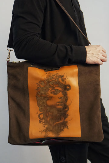 The Medusa Helmet bag is a combination of tedious craftsmanship with laser etching technology and premium leathers.
